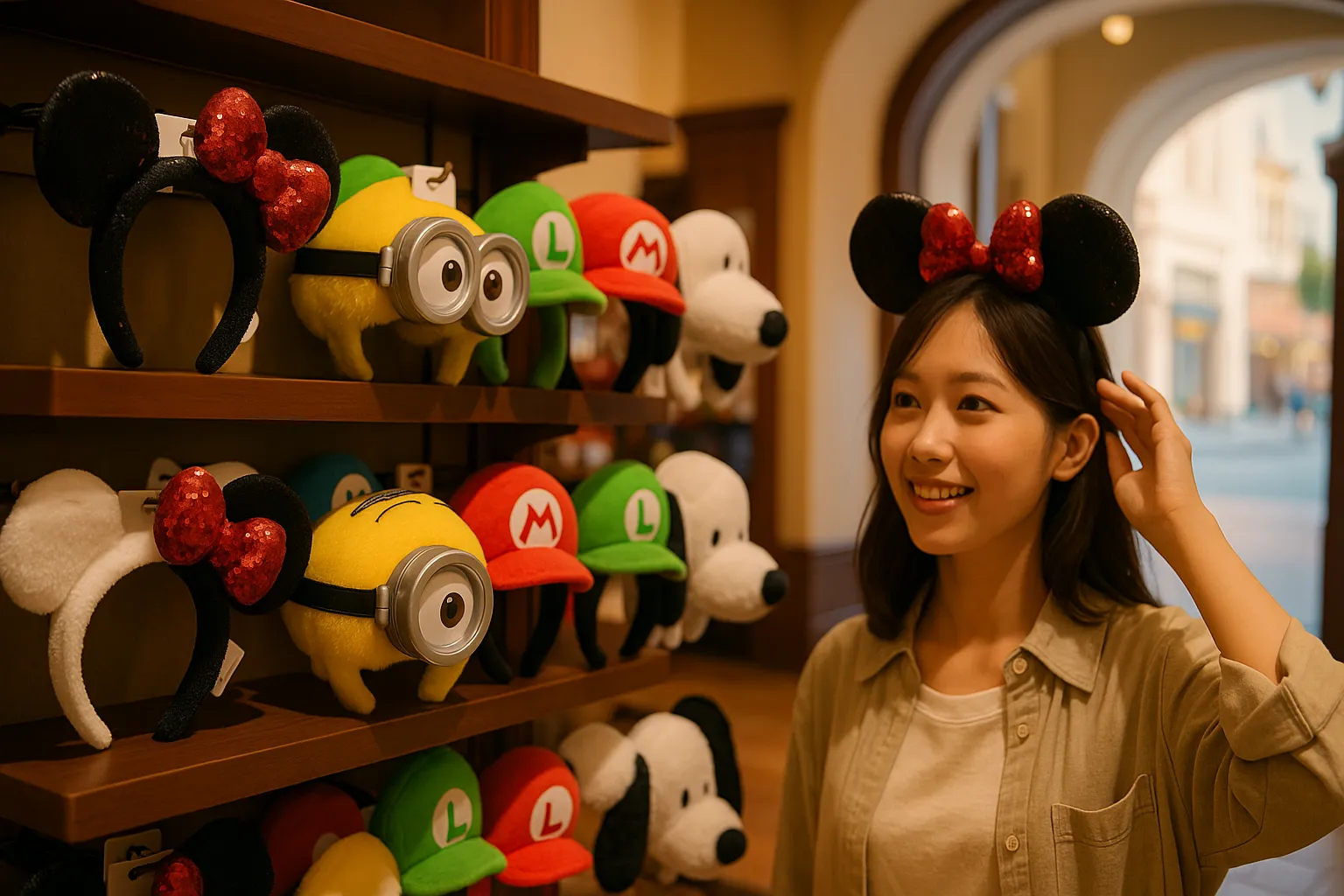 カチューシャをつけた瞬間、ふと鏡越しに自分を見て「わたし、今ユニバにいるんだ」と実感する人が多いんです。