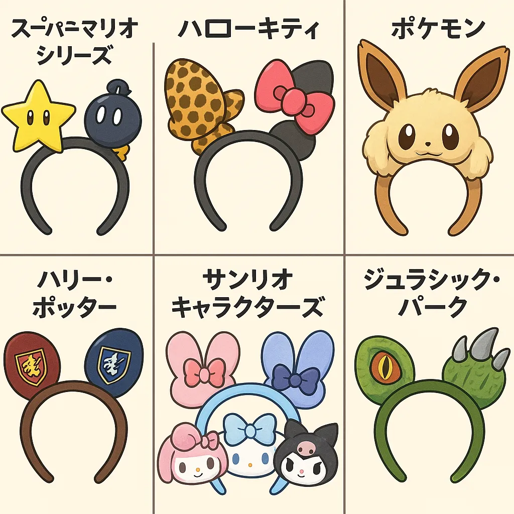 今年はパステル×もこもこ素材がトレンドで、手に取った瞬間の“触感の魔法”を感じます。 - ジュラシック・パーク:恐竜モチーフの立体耳が登場し、キッズ&ファミリー層に注目。